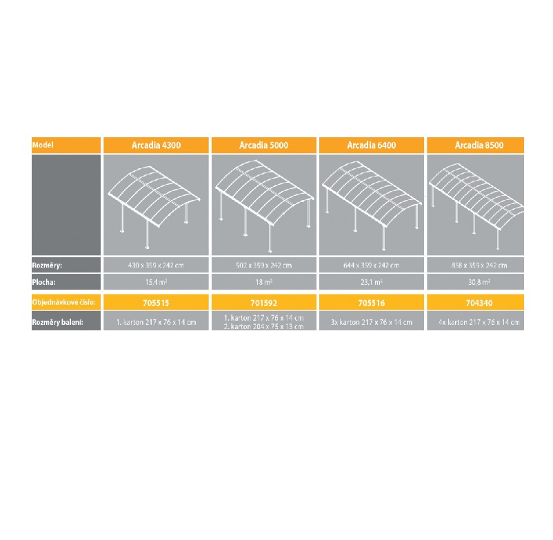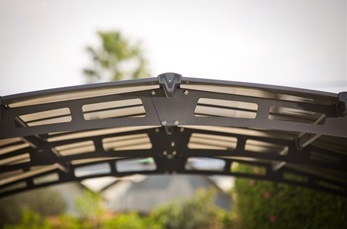 Canopia by Palram Arcadia 4300 antracit 705515 Hliníkový přístřešek pro auto pro zastřešení na jedno auto k montáži s obloukovou střechou. Zastřešení pro auto Palram Arcadia 4300 je s rozměry 430 x 359 x 242 cm.