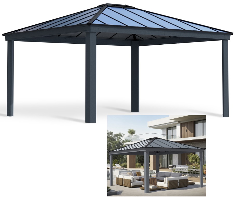 Hledáte, kde koupit hliníkový altán Palram Martinique 4300 antracit za výhodnou cenu? Jsme autorizovaný prodejce. Nabízíme akční cenu, českou distribuci s prodlouženou zárukou na panely, odborné poradenství a dopravu zdarma.