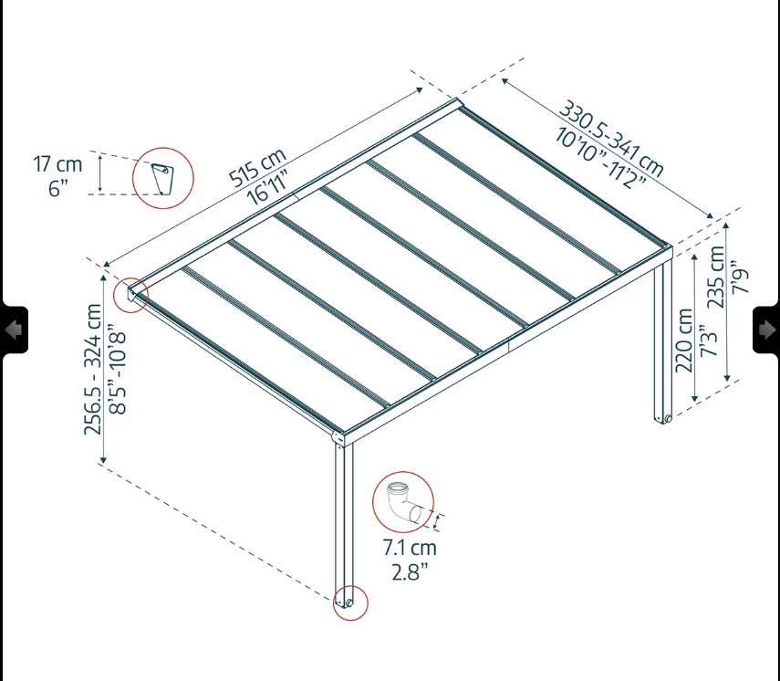 Rozměry přístřešku (D x Š x V) (cm) 515 x 330-341 x 256-324