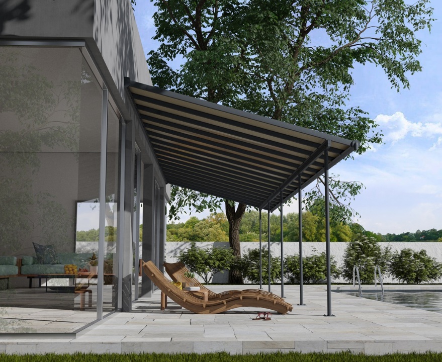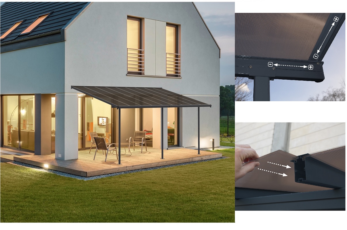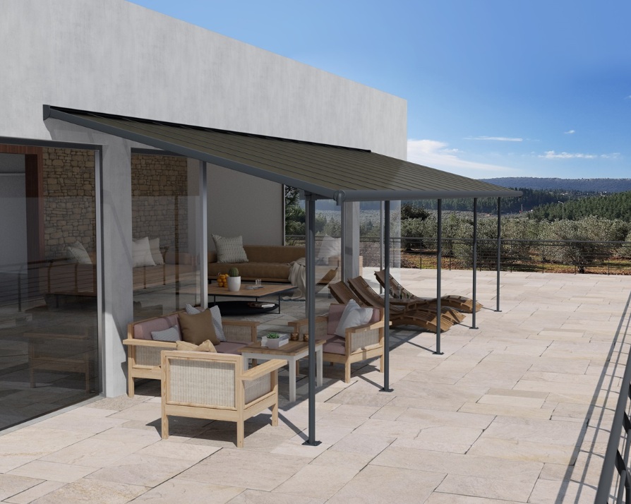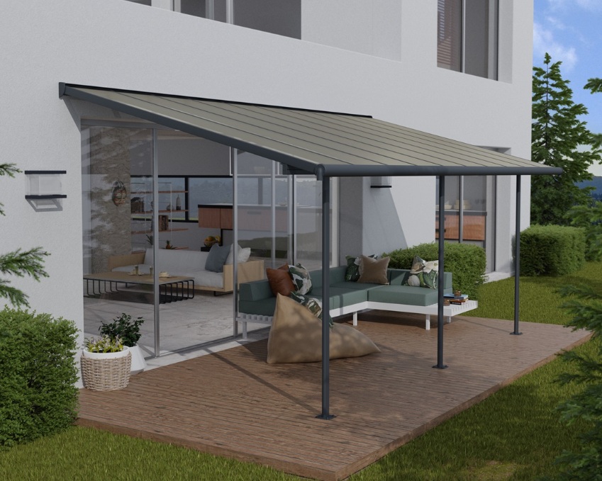 Hliníková pergola ke zdi domu Palram Sierra 3000 antracit za akční cenu s dopravou zdarma. Autorizovaný prodejce, prodloužená záruka a servis ČR, odborné poradenství.