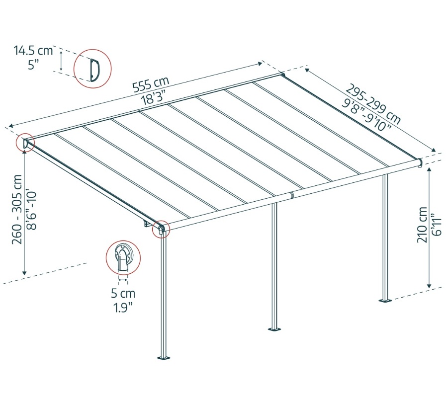 Hliníková pergola ke zdi domu Palram Sierra 5400 antracit za akční cenu s dopravou zdarma. Autorizovaný prodejce, prodloužená záruka a servis ČR, odborné poradenství.