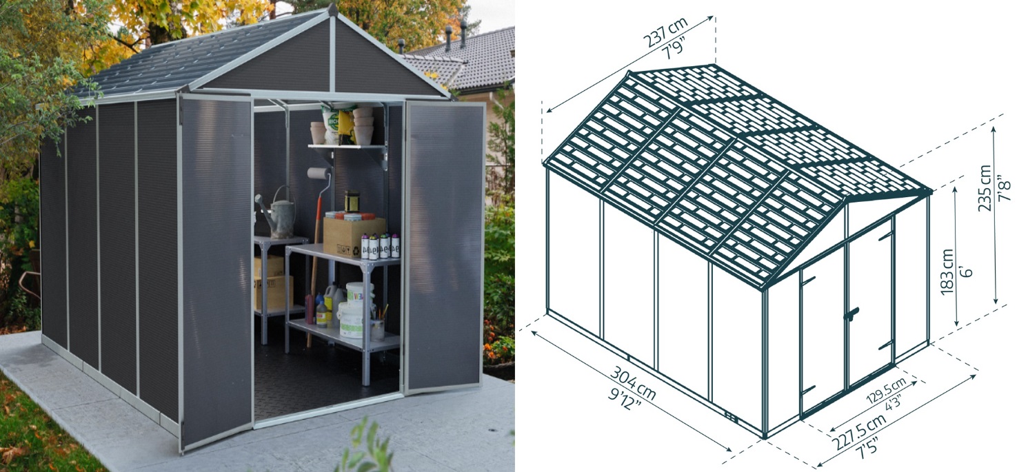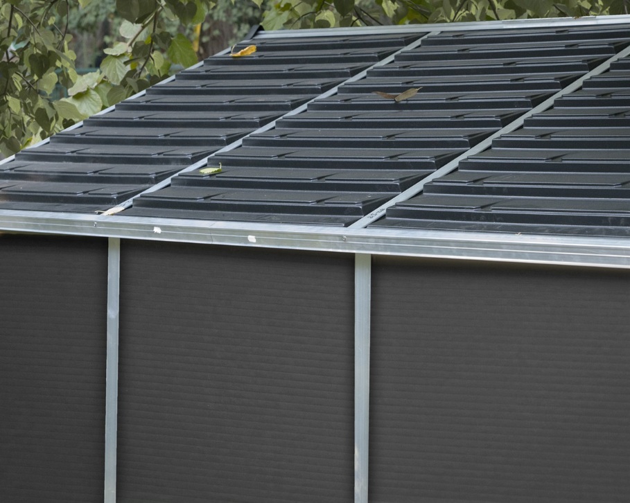 Plechový domek na nářadí s pultovou střechou ideální pro uskladnění kol, sekaček i materiálu G21 GRAH 915 antracit za akční cenu s dopravou zdarma. Autorizovaný obchod G21, záruka a servis ČR, odborné poradenství.