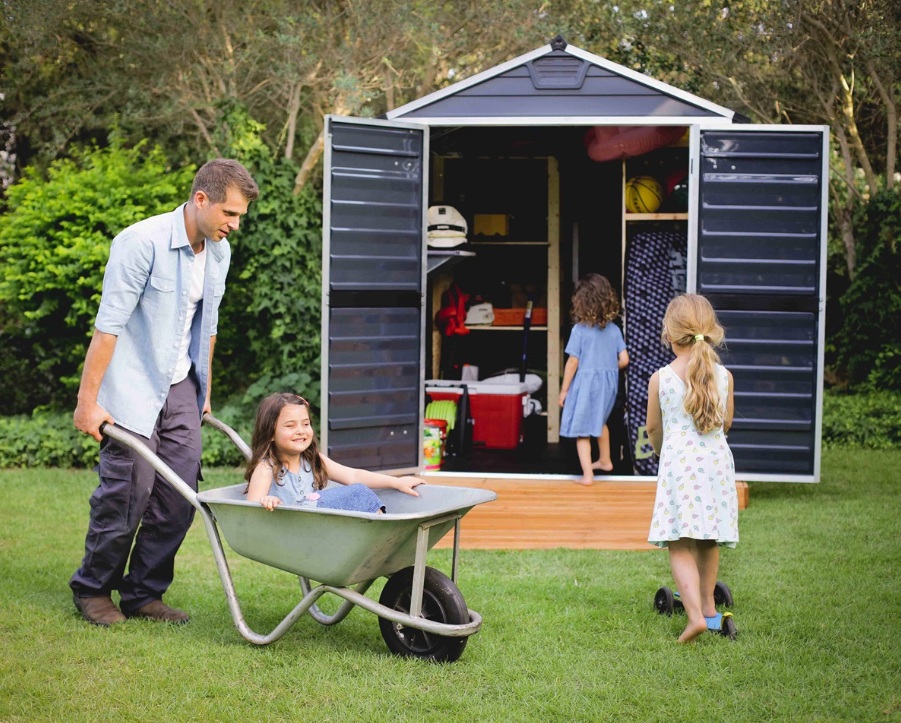 Plechový domek na nářadí s pultovou střechou ideální pro uskladnění kol, sekaček i materiálu G21 GRAH 915 antracit za akční cenu s dopravou zdarma. Autorizovaný obchod G21, záruka a servis ČR, odborné poradenství.