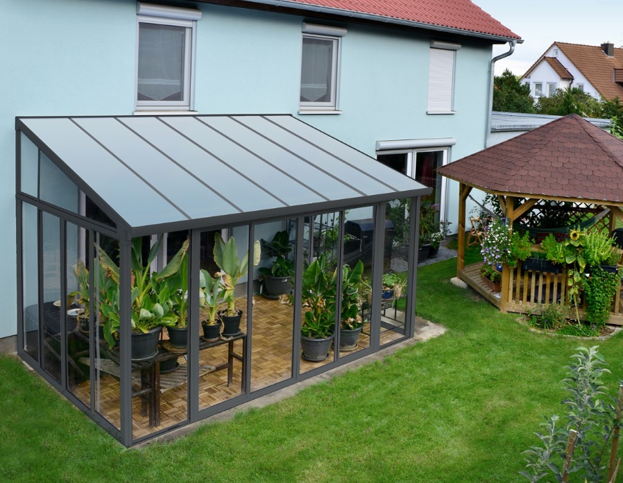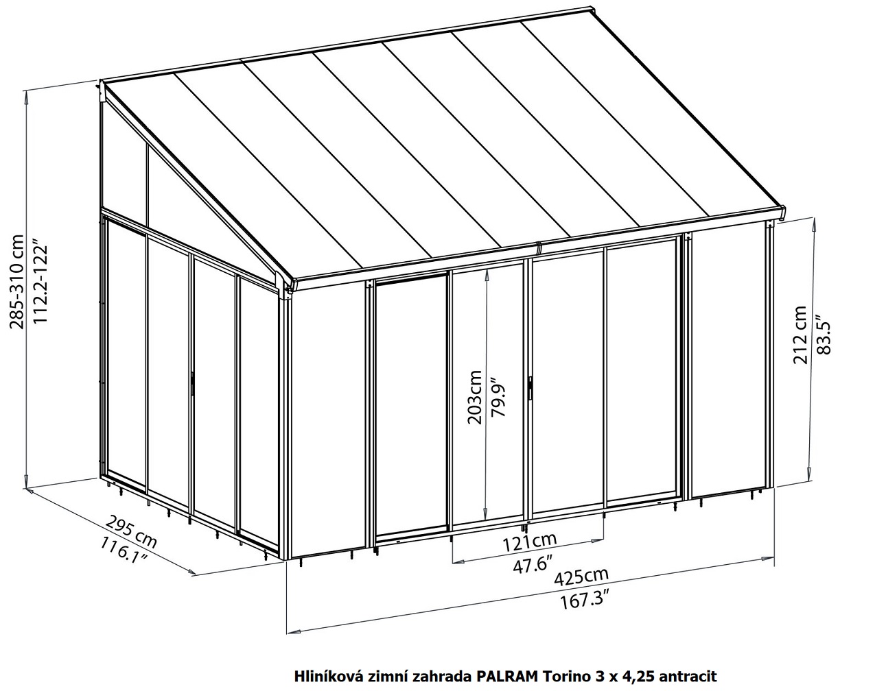 Hliníková zimní zahrada Palram Torino 4 x 4,25 antracit za akční cenu s dopravou zdarma. Autorizovaný obchod Palram, prodloužená záruka a servis ČR, odborné poradenství.