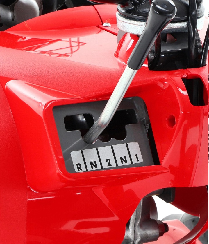 Snadná jízda díky celokovové převodové skříni (2 rychlosti vpřed a 1 vzad)