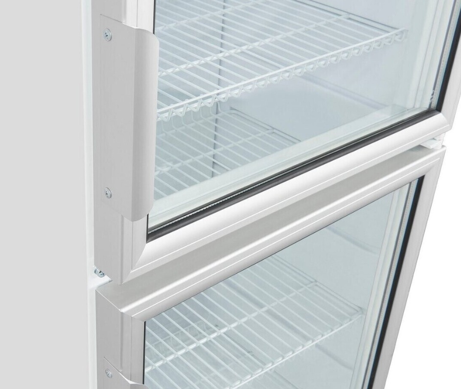 Elegantní design: Dvojité prosklené dveře s hliníkovým rámem dodávají vitríně moderní vzhled a zaručují dokonalou prezentaci vašich produktů.