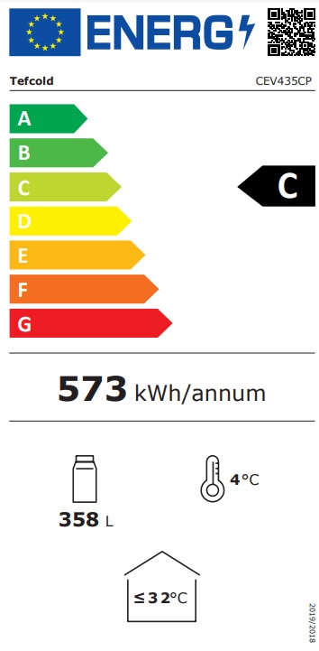 Nabízíme energeticky úspornou prosklenou lednici, chladící vitrínu TEFCOLD CEV 435 CP BLACK, která je v energetické třídě C. Tato celočerná prosklená lednice, chladící vitrína TEFCOLD CEV 435 CP BLACK je ideální pro vystavení vína, piva nebo nealkoholických nápojů. Můžete ji použít také jako prostornější vertikální pult v barech a restauracích nebo díky ní lépe zviditelnit nápoje v maloobchodě. Černý interiér TEFCOLD CEV 435 CP BLACK v kombinaci s prosklenými dveřmi a LED osvětlením na vnitřní straně jejich rámu zaručí, že vaše výrobky budou vždy perfektně prezentovány. Prosklená lednice je také vybavena osvětleným reklamním panelem pro zvýraznění Vaší značky nebo prodejny.