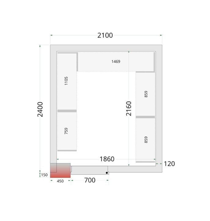Chladírenský box 6,1 m3 TEFCOLD CR 150x240x220 izolace 80mm vytvoří chladící místnost, chlazený sklad pro skladování potravin v gastro provozech. Tefcold CR 150x240x220 chladící box obsahuje panely, nerezovou podlahu a dveře včetně zámku.