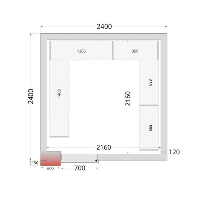 TEFCOLD CR 150×150×220: Stavebnicový chladicí box, s 80mm izolací, nerezovou podlahou a zamykacími dveřmi. Ideální pro sklad nebo chladicí místnost.