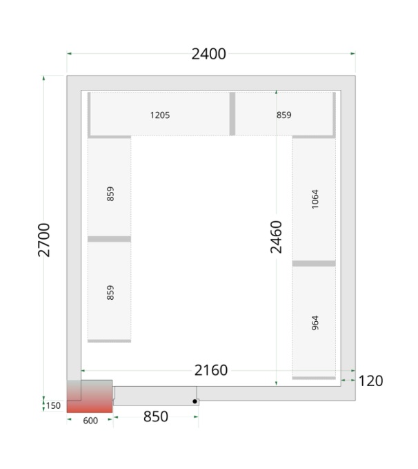 Vnitřní rozměry (ŠxHxV): 2160 x 2460 x 1960 mm