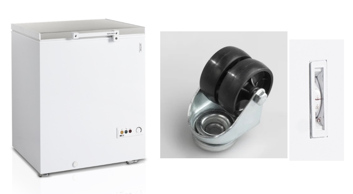 TEFCOLD FR 205 je prostorná pultová mraznička (185 L) s plným víkem a teplotním rozsahem -24 až -14 °C. Nabízí rukojeť se zámkem, teploměr a praktická kolečka pro snadnou manipulaci. Energetická třída C.