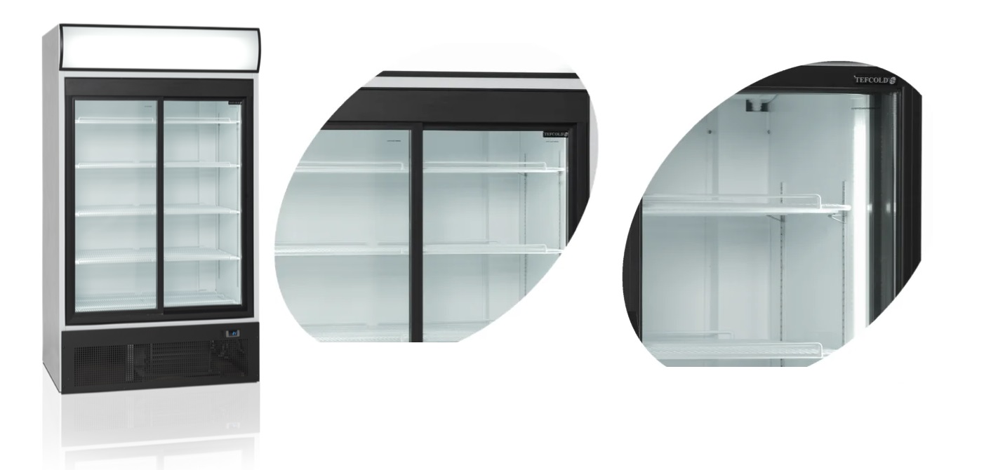 TEFCOLD FSC 1950 S | Prosklená Lednice 2-dveřová | posuvné dveře, š. 111 cm, reklamní panel, Servis ČR