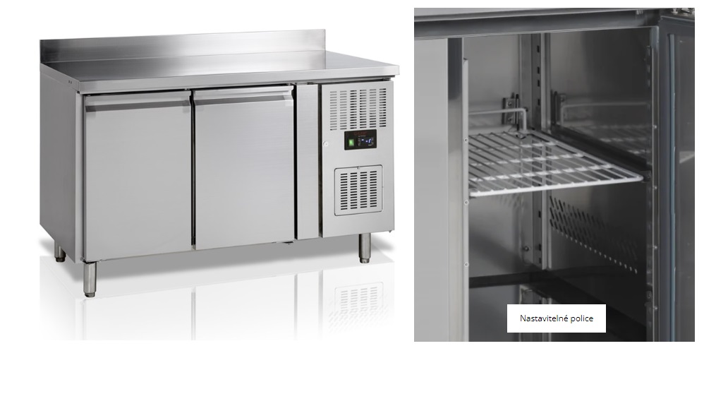 TEFCOLD GC72 je nerezový chladicí stůl (272 l) bez desky, s ventilovaným chlazením a automatickým odtáváním. Ideální pro gastro provozy, nabízí digitální termostat, samozavírací dveře a tichý chod (42 dB).