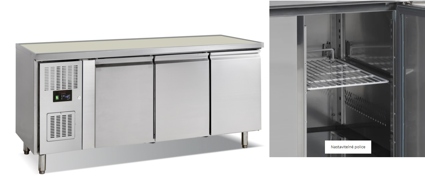 Tefcold GC73 | Chladicí stůl nerez, 3-dveřový, šířka 180 cm, bez pracovní desky – záruka 2 roky