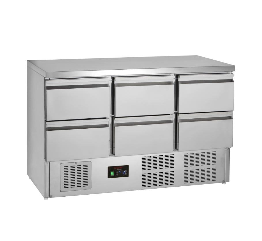 TEFCOLD GS365ST/6 Drawers Saladette | Chladicí Stůl Nerez - Saladeta 6 zásuvek | š. 136 cm, GN1/1, Servis ČR