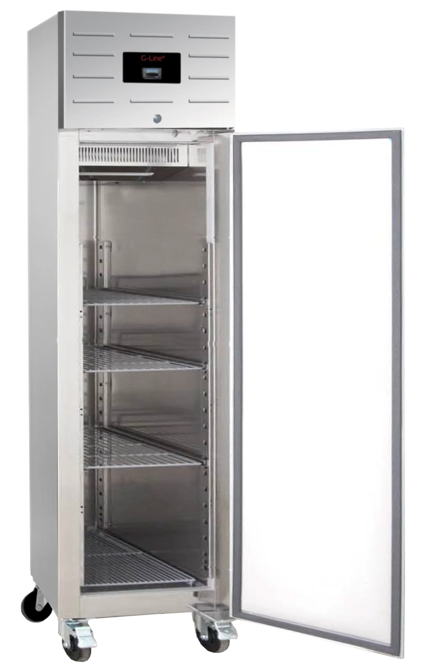 TEFCOLD GUC 70: Celonerezová chladicí skříň (528 l) pro GN2/1 přepravky. Ideální pro gastro provozy. S ventilovaným chlazením, digitálním termostatem, zámkem, samozavíracími dveřmi a tichým chodem. Spolehlivá a úsporná.