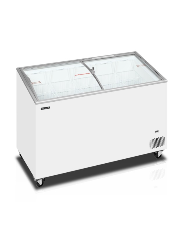 TEFCOLD IC-SCEB je cenově výhodná kompaktní pultová mraznička. Je skvělá pro začínající firmy, sezónní výprodeje atd. Má velmi stabilní a pevnou konstrukci a kolečka pro snadnou manipulaci v obchodě. Dodává se v různých velikostech. Díky mnoha velikostem je tento model ideální pro menší obchody a lahůdky s omezeným prostorem, stejně jako větší obchody, čerpací stanice, supermarkety atd. Všechny velikosti jsou šetrné k životnímu prostředí. Řada SCEB má sníženou přední část a zakřivené posuvné skleněné víka. To poskytuje lepší prezentaci obsahu. Díky tomu je mraznička ideální pro vystavení mražených potravin včetně zmrzliny. Teplota uvnitř může být -14 °C pro zmrzlinu nebo -21 °C pro ostatní mražené potraviny. Všechny velikosti mají prosklená víka s bezpečnostním zámkem. Mají také odmrazovací otvor pro čištění jednotky.