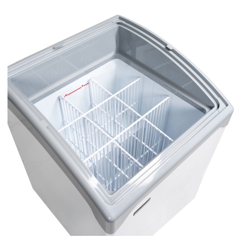 Tefcold Focus 131 | Prosklený pultový mrazák, 254 l, zámek, 5 košů, LED osvětlení – záruka 2 roky