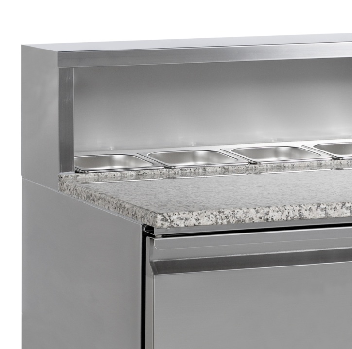 Chladicí pizza stůl TEFCOLD PT 920 je vyroben z nerezové oceli SS304. Má žulovou desku, která je pro přípravu pizzy ideální, protože žula zůstává chladná a těsto se na ni méně lepí. Stoly jsou k dispozici v několika velikostech se 2 nebo 3 dvířky. Také je možné pořídit si přizpůsobenou variantu se zásuvkami. Dodává se s horní jednotkou pro gastronádoby GN nebo bez ní – horní jednotku lze dodatečně namontovat. Ve vrchní části je možné vložit GN 1/6 * 5 ks pro model PT 920 a 8 ks GN 1/6 pro model PT 930. GN nejsou součástí.