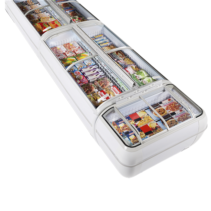 TEFCOLD Twin HEAD-A-CF kombinovaný chladicí/mrazicí ostrov se vyznačuje inovativním designem, který je ideální pro prodejny s omezeným prostorem. Jeden ostrov TWIN má stejný objem jako dvě standardní truhlicové mrazničky nebo chladničky stejné délky umístěné zády k sobě. Díky tomu zabírá méně podlahové plochy, čímž poskytuje více úložného prostoru na menší ploše. Tento model se také pyšní vyšší spolehlivostí a nízkou spotřebou energie, což vede k úspoře celkových nákladů, jak na provoz, tak na investice. TWIN je vybaven nárazovými lištami pro zvýšení odolnosti a statickým chlazením pro efektivní uchovávání potravin. Funkce automatického odmrazování přispívá k nižším nárokům na údržbu, zatímco dva chladicí systémy zajišťují optimální teplotní podmínky pro různé produkty, což činí tento model ideálním řešením pro komerční využití.