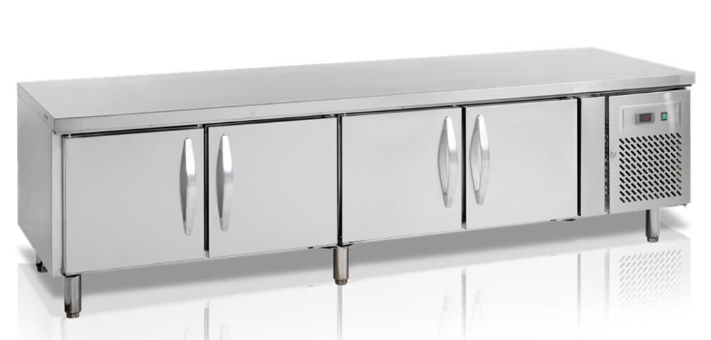 Velký gastro mrazící stůl Tefcold GF74 nerez 32375 4-dvéřový 223 cm je bez pracovní desky pro gastro provozy. Mrazící stůl pro gastro provozy Tefcold GF74 obsahuje ventilované chlazení.