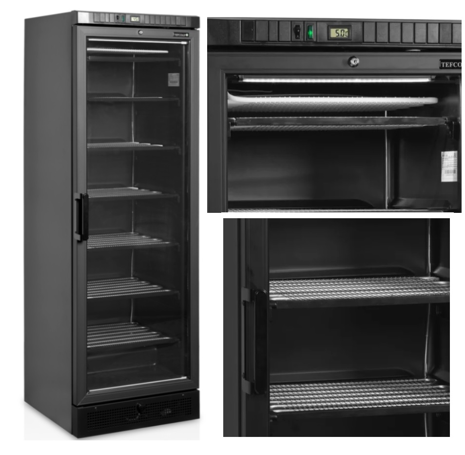 TEFCOLD UFSC371G Black mrazicí skříň s prosklenými dveřmi nabízí vynikající prezentaci produktů za příznivou cenu. Vyhřívané prosklené dveře zabraňují vzniku kondenzace a zajišťují jasný výhled na obsah, zatímco vnitřní LED osvětlení efektivně zvýrazňuje mražené zboží. Skříň je vybavena statickým chladicím systémem a šesti pevnými policemi s integrovanými výparníky, které zajistí rovnoměrnou teplotu. Pro snadnou údržbu je k dispozici funkce odtoku vody při rozmrazování.