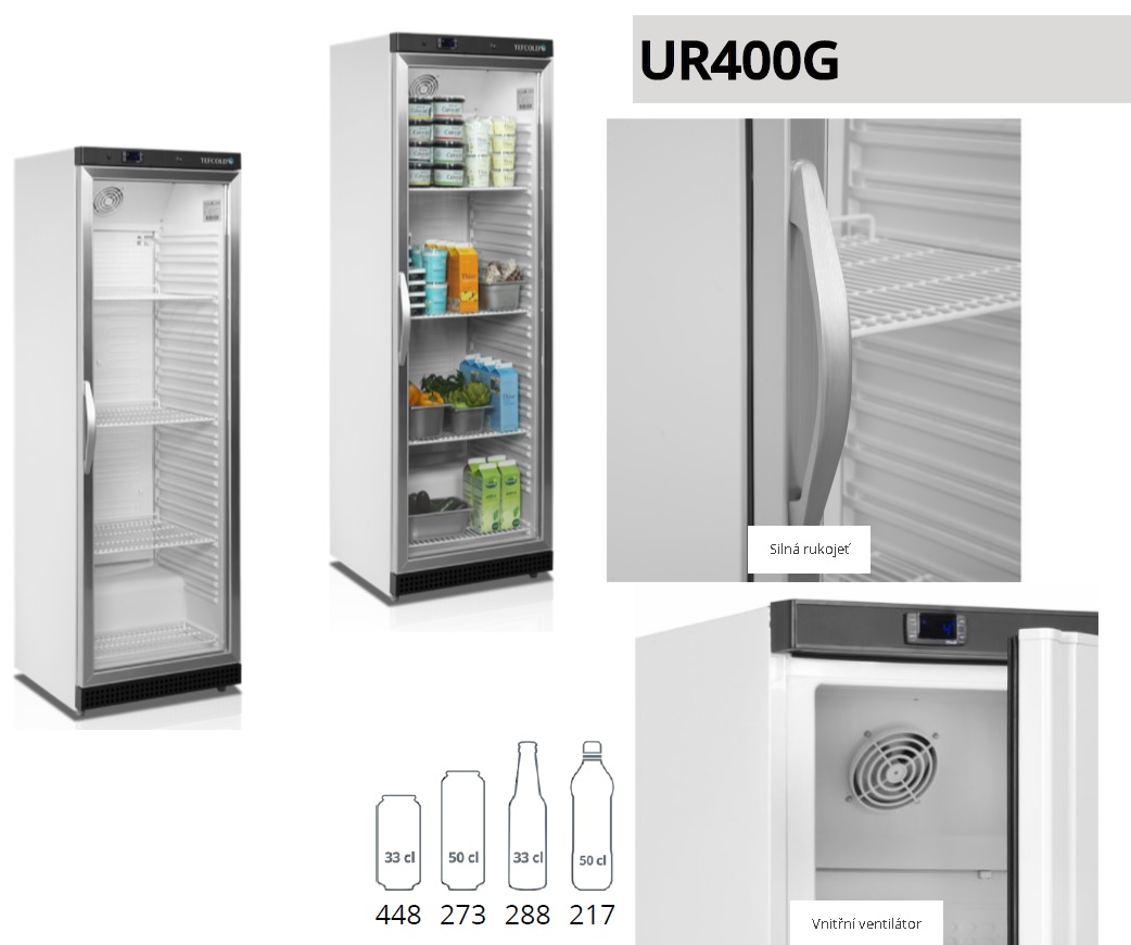 TEFCOLD UR 400 G Chladící skříň prosklené dveře pro obchody a zázemí gastro provozů