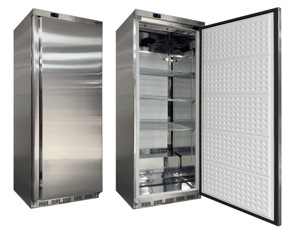 TEFCOLD UR 600 SS o objemu 620 l je ideální volbou pro náročné gastroprovozy i zázemí prodejen. Police chladicí skříně jsou velmi pevné a stabilní, takže bez problémů unesou i těžší zátěž – jejich nosnost dosahuje až 196 kg/m². Skříň je vybavena třemi policemi o rozměru GN 2/1, což umožňuje ukládání standardních přepravek o velikosti 65 × 53 cm. Vnější plášť je vyroben z nerezové oceli SS430, zatímco vnitřní prostor tvoří kvalitní nerezová ocel třídy SS304. Součástí výbavy je digitální termostat, ventilátor pro rovnoměrné rozložení teploty, integrované madlo ve dveřích a zámek pro bezpečné uzavření.