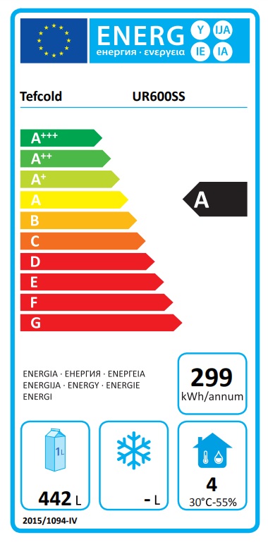 Tefcold UR600SS | Lednice gastro - chladicí skříň 620 l, nerez, GN 2/1, en. třída A, výška 190 cm – záruka 2 roky