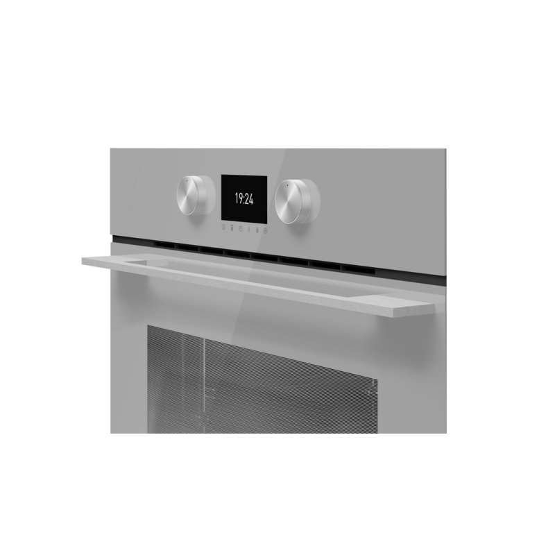 Tato multifunkční trouba z designové řady MAESTRO je ideální pro ty, kteří hledají kombinaci elegantního vzhledu v barvě Steam Grey, úsporného provozu a moderních funkcí. S objemem 71 litrů a energetickou třídou A+ se skvěle hodí do každé kuchyně.