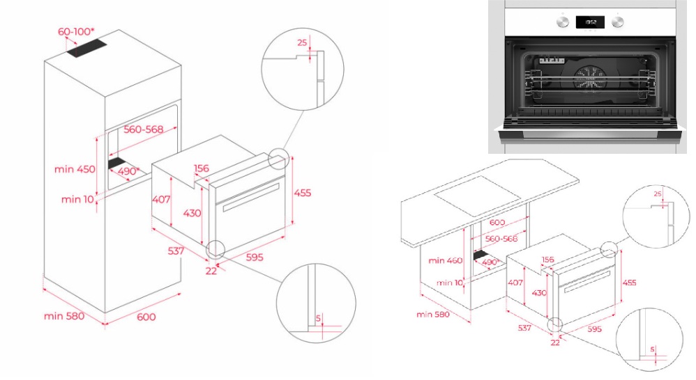 • Typ trouby: Kompaktní (45 cm) kombinovaná multifunkční a mikrovlnná.