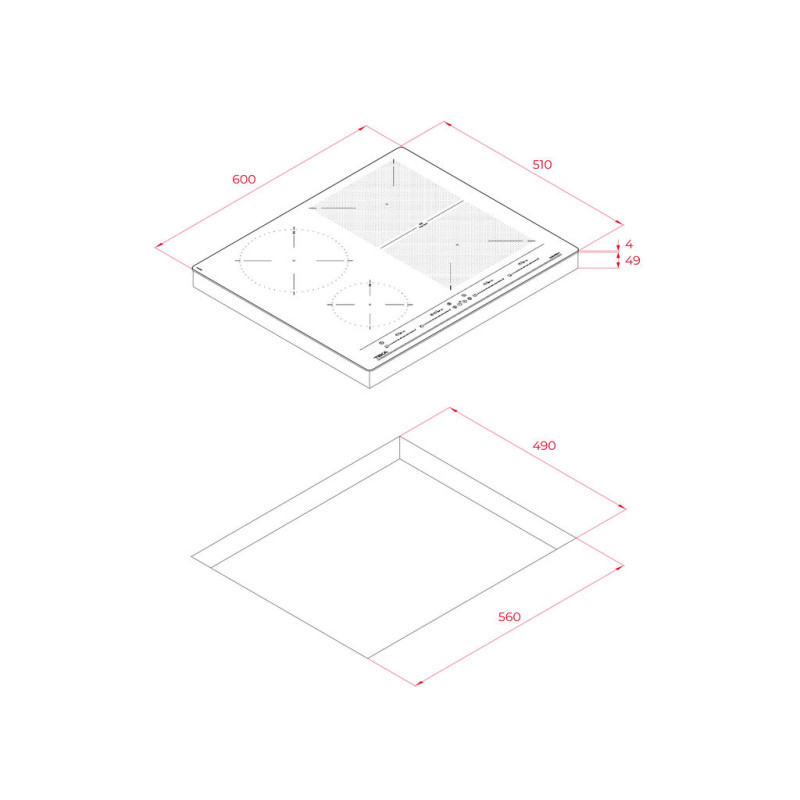 Tato 60cm indukční varná deska z designové řady TOTAL je ideálním řešením pro ty, kteří hledají styl a funkčnost. Díky svému minimalistickému designu s přední zkosenou hranou a povrchu z 4mm keramického skla se dokonale začlení do každé moderní kuchyně.