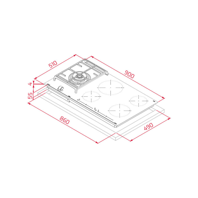 Tato 90cm kombinovaná varná deska z řady TOTAL v elegantním provedení z černého skla je ideálním řešením pro ty, kteří se nechtějí vzdát výhod plynu ani indukce. Díky svému modernímu designu s přední zkosenou hranou a povrchu z 4mm keramického skla se dokonale začlení do každé kuchyně.