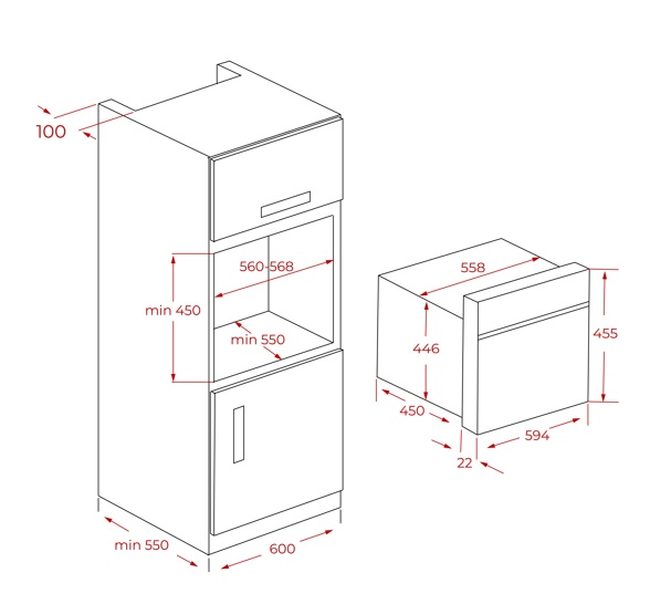 • Materiál: Interiér je z nerezové oceli. Dvířka jsou vybavena třemi skly.