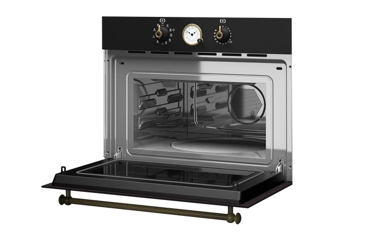 TEKA MWR 32 BIA ATBS je vestavná kompaktní mikrovlnná trouba (45 cm) ze speciální Country Style Edition, která kombinuje moderní funkce s rustikálním designem. Její antracitová barva a detaily ve stylu "staromosaz" ji předurčují do tradičních nebo venkovských kuchyní.