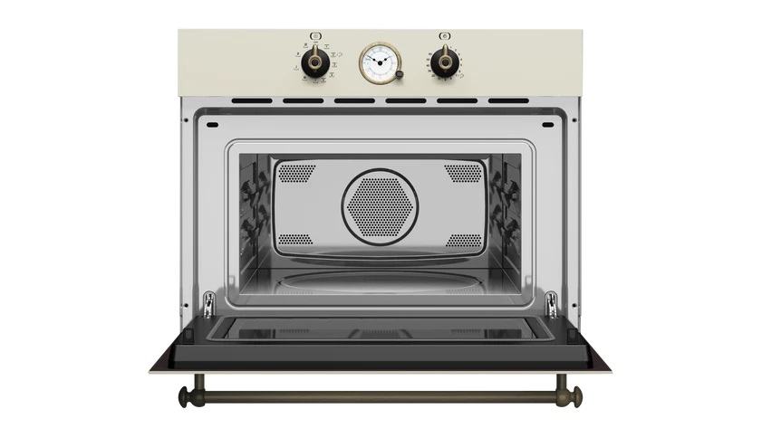 TEKA MWR 32 BIA VNBS je vestavná kompaktní mikrovlnná trouba (45 cm) ze speciální Country Style Edition, která kombinuje moderní funkce s rustikálním designem. Její barva Vanilla brass (vanilka/mosaz) a detaily ve stylu "staromosaz" ji předurčují do tradičních nebo venkovských kuchyní.