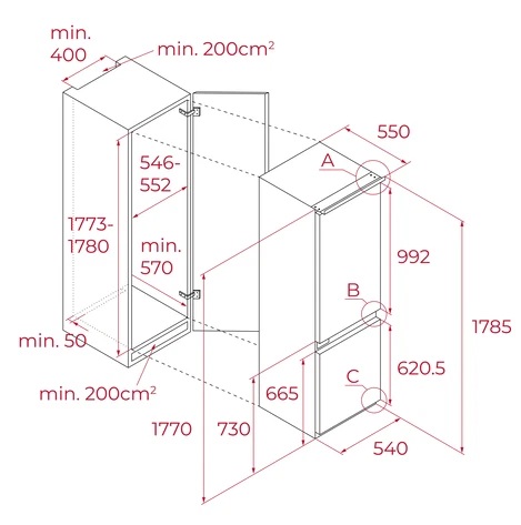• Rozměry (V x Š x H): 1785 x 550 x 540 mm
