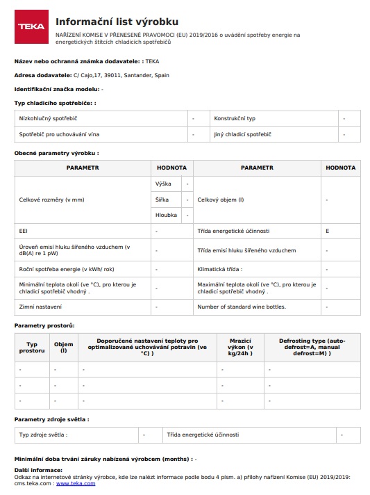 Kontaktní údaje výrobce, zastoupení v EU v souladu s nařízením GPSR: Teka - CZ s.r.o., Plynární 1617/10, 170 00 Praha 7, E-mail: info@teka.cz