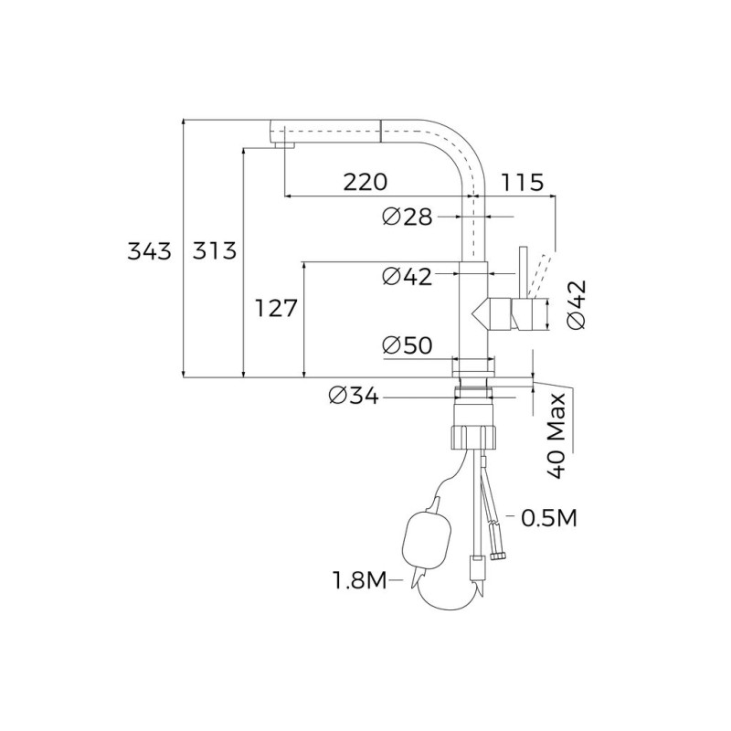 Tato kuchyňská baterie přináší do vaší kuchyně minimalistický a ekologicky šetrný design v elegantním matně černém provedení. Baterie je vyrobena kompletně z vysoce kvalitní nerezové oceli (AISI 304), což zaručuje dlouhou životnost a odolnost. Díky vysokému ramínku a skryté výsuvné koncovce je mytí nádobí i oplachování dřezu maximálně pohodlné. Ekologický perlátor s omezením průtoku na 5 l/min a Eko kartuše (C3) se studeným startem šetří vodu i energii, přičemž zajišťuje dokonalý proud vody. S prodlouženou zárukou na 5 let máte jistotu kvality a spolehlivosti.