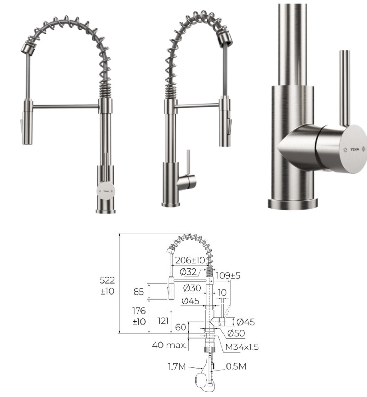Profesionální kuchyňská baterie TEKA UNI 9912 XP