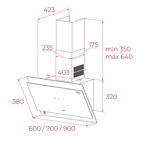 Teka Van Gogh DVT 78660 TOS VG | Designová šikmá digestoř 70 cm, černé sklo šedá tmavá, 698 m3/h