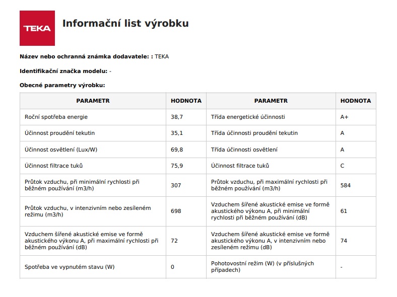 Kontaktní údaje výrobce, zastoupení v EU v souladu s nařízením GPSR: Teka - CZ s.r.o., Plynární 1617/10, 170 00 Praha 7, E-mail: info@teka.cz