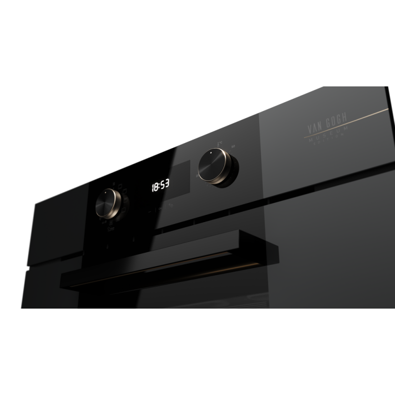 Přeneste nadčasové umění Vincenta Van Gogha do vaší kuchyně s exkluzivní edicí spotřebičů inspirovanou jeho ikonickým obrazem Slunečnice. Každý kus nese umělcův podpis a skicu slunečnic, což je pocta jeho mistrovské tvorbě. Design kombinuje elegantní černé sklo s akcenty z šampaňské oceli, čímž vytváří rafinovaný a umělecký vzhled, který spojuje moderní eleganci s nadčasovým půvabem.