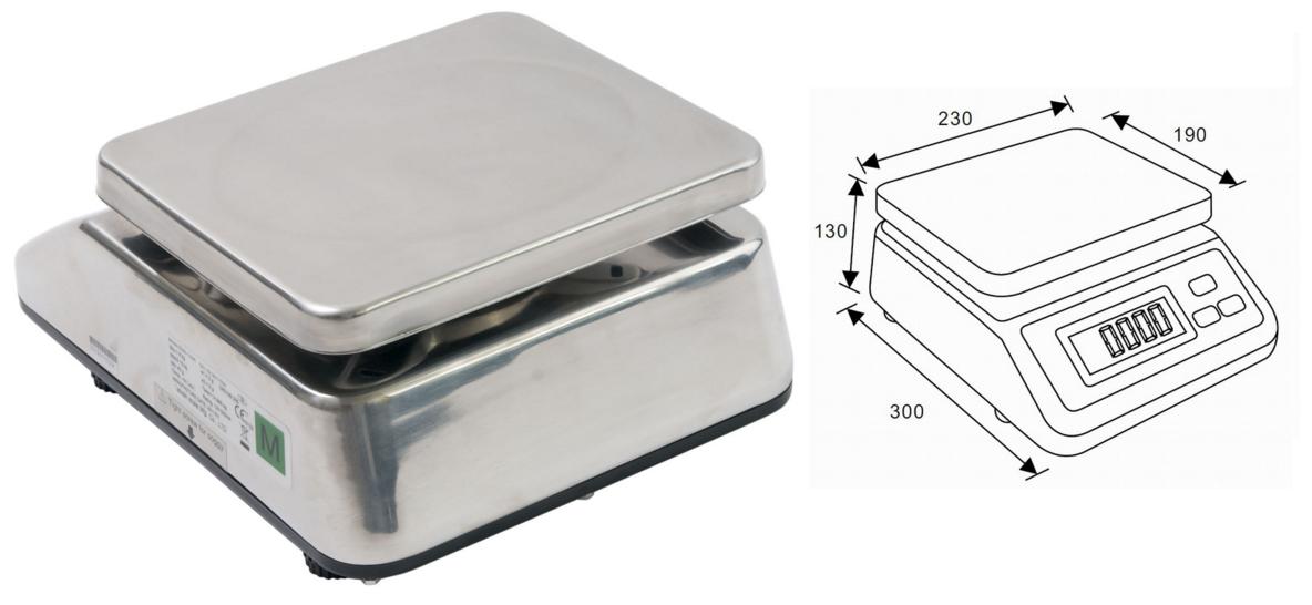 Gastro Váha Certifikovaná T-SCALE | S29B, 3/6kg | do 15 kg, IP-67, stolní, nerez, 190 x 230 mm